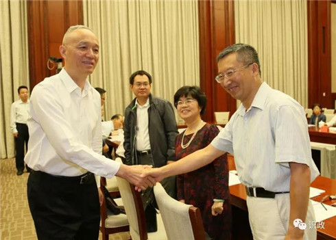 蔡奇与专家握手致意
