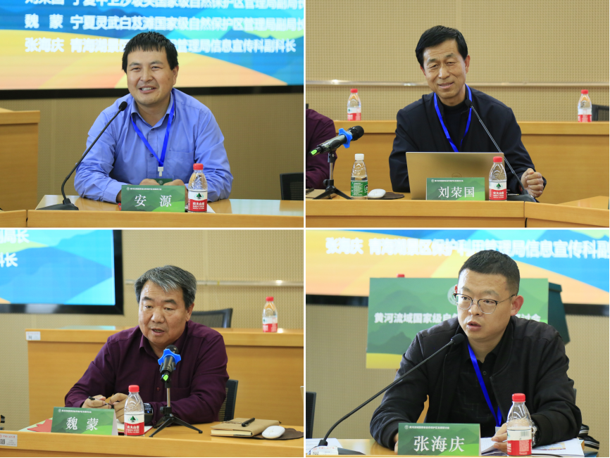 甘肃秦州珍稀水生野生动物国家级自然保护区管护中心办公室主任池勇江,大通北川河源区国家级自然保护区管理局办公室主任李福华,青海湖景区保护利用管理局副科长魏启超,陕西陇县秦岭细鳞鲑国家级自然保护区管理处副主任闫建新以“自然保护地能力建设”为主题展开讨论。嘉宾们分析了自然保护区当前管理中存在的资金保障尚缺乏、治理体系待完善、产品转化不充分、宣传科普不广泛、科研力量需加强等问题,提出黄河流域保护区需根据各自特点分类管理,敏锐挖掘生态市场进一步推动生态产品价值实现。